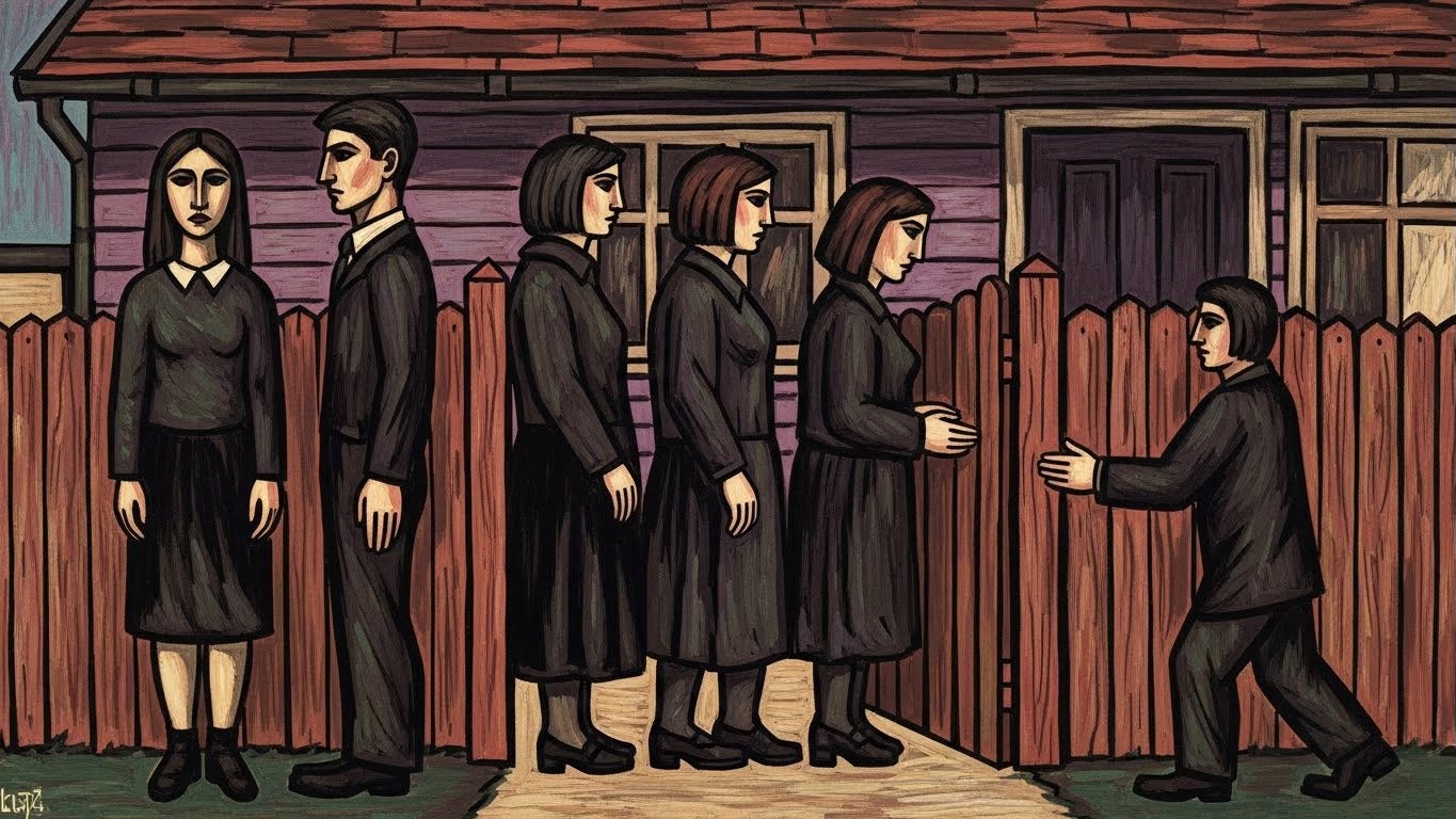 We are five friends. Once we came out of a house one after another, first came one and stood next to the gate, then came, or rather slid as easy as a drop of quicksilver, the next, through the gate and stood not far from the first one. Then the third, then the fourth, then the fifth. Finally we all stood in one row. The people became aware of us, pointed at us and said: Those five came out of this house now. Since then we live together, and it would be a peaceful life if there wouldn’t be a sixth person that keeps getting involved. He doesn’t do anything to us, but it is annoying and that’s already enough. Why does he force himself into something, where he isn’t welcome. We don’t know him and don’t want to have him here. The five of us didn’t know each other before as well, and if you think about it, we don’t know each other now either, but what is possible and tolerated between the five of us, does not apply to this sixth person and cannot be tolerated. Apart from that we are five, and don’t want to be six. And what kind of sense should this constant being together have in the first place, also between us five it doesn’t make sense, but as we are already together now, we will stay together, and we don’t want a new community, precisely because of our common experiences. But how should you explain this to a sixth? Long explanations would almost mean acceptance into our circle, we rather don’t explain anything and won’t accept him. He can try to persuade us with all his might; we push him away with our elbows, but as much as we push him away, he always comes back.